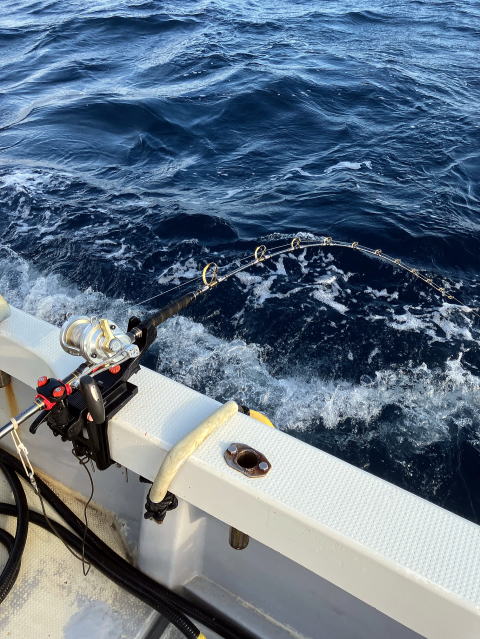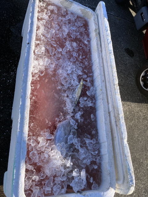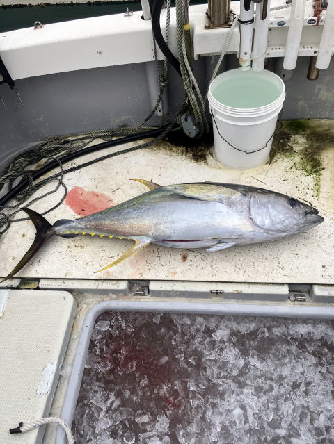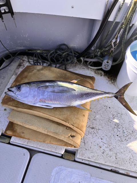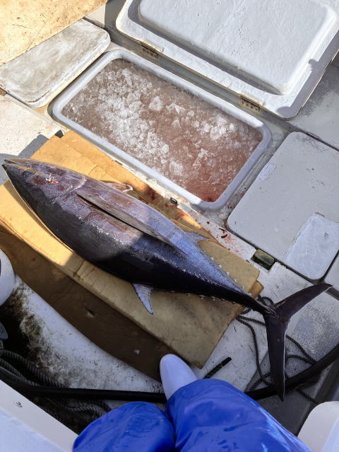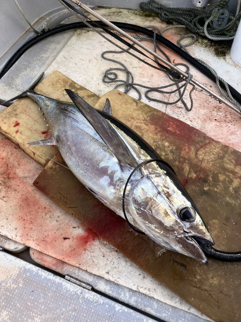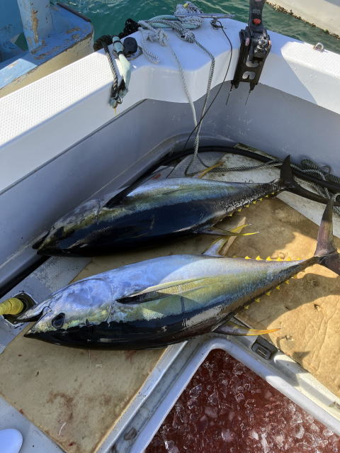 で5〜6隻ヒットも船頭はアタリもなくその後8時の地合いも10時の地合いも近くでヒットもアタリもなく撃沈でした。キハダは船頭の知る限りでは