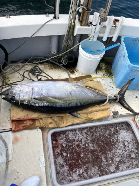 5〜6匹とビンチョウマグロも7〜8本釣れた多と思います。切られたアタリも今日は多かったと思います。 |