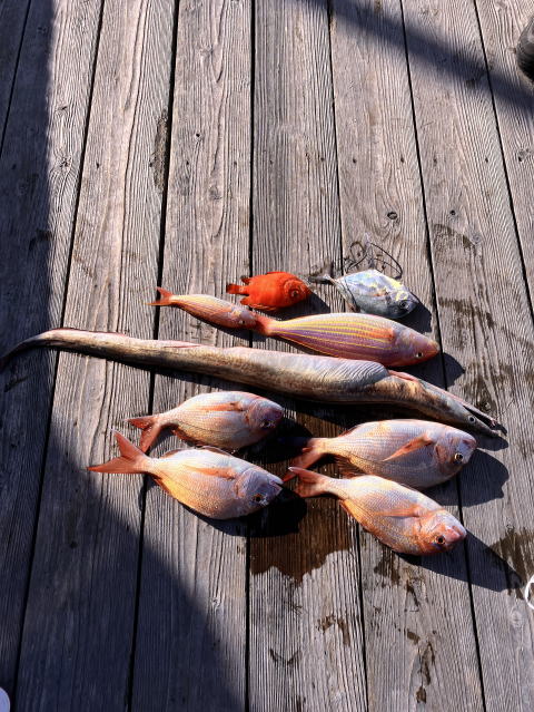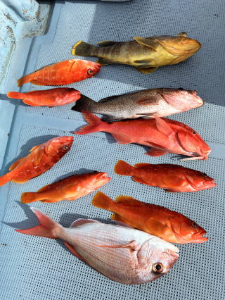 | 天然真鯛やホウキハタ・アマダイ・オオモンハタなど釣れました。 |